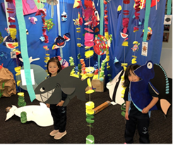 There were also inquiry stations set up for the children to explore and investigate which included an amazing underwater aquarium that the children could code robots to collect rubbish, the Magic School Bus dramatic play, a boat building and responsible fishing challenge as well as a reduce, reuse and recycle game.